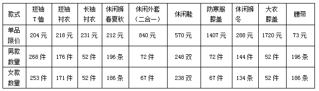 2.3交貨期:合同簽訂后70日歷日完成全部貨品的交付工作。(其中合同簽訂后50日歷日完成冬裝貨品交付,冬裝貨品包括休閑外套、防寒服、大衣、休閑鞋、休閑褲.冬、腰帶)。