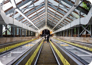 根據(jù)《重慶市外經(jīng)貿(mào)委關(guān)于重慶皇冠企業(yè)有限公司終止合同、章程及變更經(jīng)營(yíng)方式的批復(fù)》(渝外經(jīng)貿(mào)發(fā)〔2000〕200號(hào))批準(zhǔn),2000年10月扶梯收回由重慶市客運(yùn)索道公司全資管理,扶該梯項(xiàng)目于1992年2月開工,1996年2月正式營(yíng)運(yùn)。該工程占地面積2526㎡,建筑面積4473㎡,總投資4200萬(wàn)元。扶梯全長(zhǎng)112米,垂直提升高度52.7米,坡度30度,運(yùn)行速度0.75米/秒,設(shè)計(jì)最大運(yùn)載能力1.3萬(wàn)人(次)/小時(shí)。